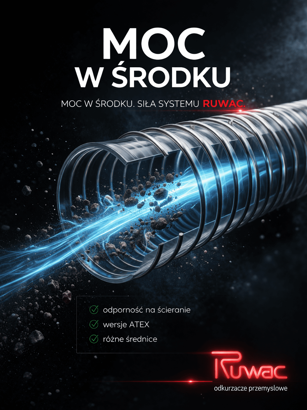 To optymalne rozwiązanie do systemów odciągowych, gdzie kluczowa jest trwałość przy zachowaniu elastyczności instalacji.