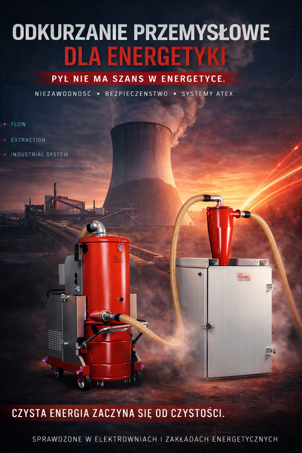 Odkurzacz przemysłowy dla energetyki to urządzenie stworzone do pracy w ekstremalnych warunkach – wysokie zapylenie, duże ilości materiału oraz konieczność pracy w trybie ciągłym. W elektrowniach i elektrociepłowniach system odkurzania jest elementem utrzymania ruchu, który bezpośrednio wpływa na bezpieczeństwo i stabilność pracy instalacji.